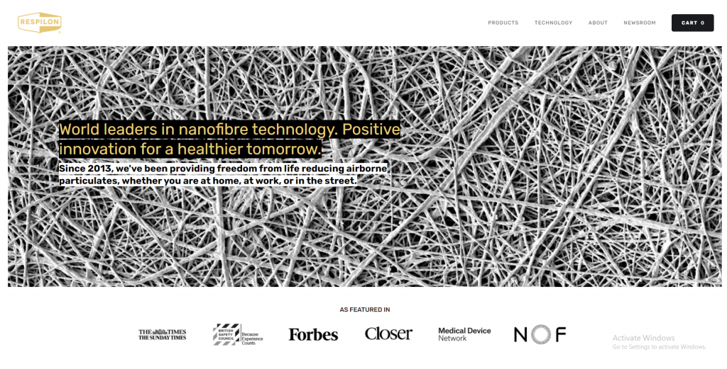 RespiTech merupakan e-commerce di bidang layanan/perawatan saluran pernafasan. Mengambil topik permasalahan polusi udara yang mematikan lebih dari 35,000 orang setiap tahunnya dan mengancam jiwa, RespiTech menawarkan peralatan-peralatan kebutuhan saluran pernafasan dan anti polusi udara dengan teknologi nanofiber.