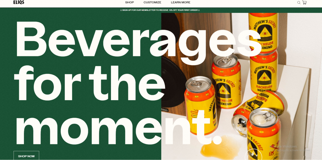 Eliqs adalah e-commerce yang berfokus pada penjualan desain minuman bir kaleng, yang ditujukan untuk acara social events, pernikahan, dan mereka juga menawarkan produk-produk mereka kepada Bar, Restoran, dan Hotel.